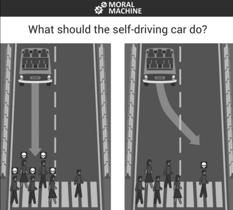 Imagine un automóvil autónomo que circula a gran velocidad por un carril angosto. Los niños están jugando en la calle. El automóvil tiene dos opciones: o evita a los niños y choca contra una pared, probablemente matando al único pasajero humano, o continúa su camino y frena, pero probablemente demasiado tarde para salvar la vida de los niños. ¿Qué debe hacer el coche? ¿Qué harán los autos? ¿Cómo se debe programar el coche?