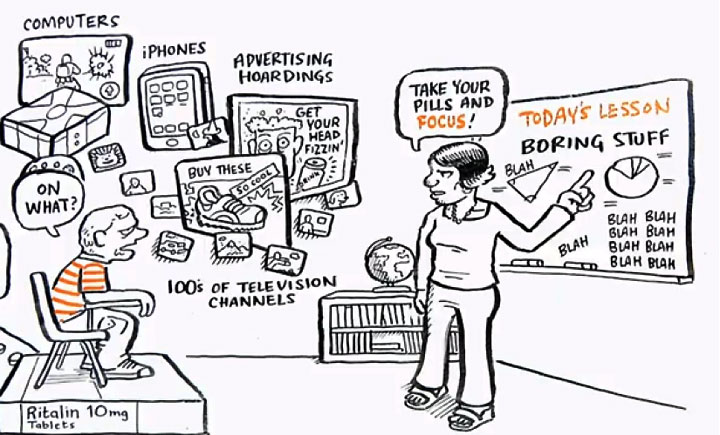 El sistema educativo deja de lado las capacidades y habilidades individuales de cada uno y en muchos casos incluso sometiéndolas en pro del beneficio del sistema. Es un sistema que para más atención a entrenar a personas en beneficio del sistema que a formarlas y potenciar sus capacidades únicas. Se crean trabajadores competitivos pero no se desarrollan en ellos la capacidad de adaptación a nuevos contextos, a la innovación o el emprendimiento y basan sus niveles de competencia en las capacidades de aceptación de lo establecido y memorización de lo que se les dice.