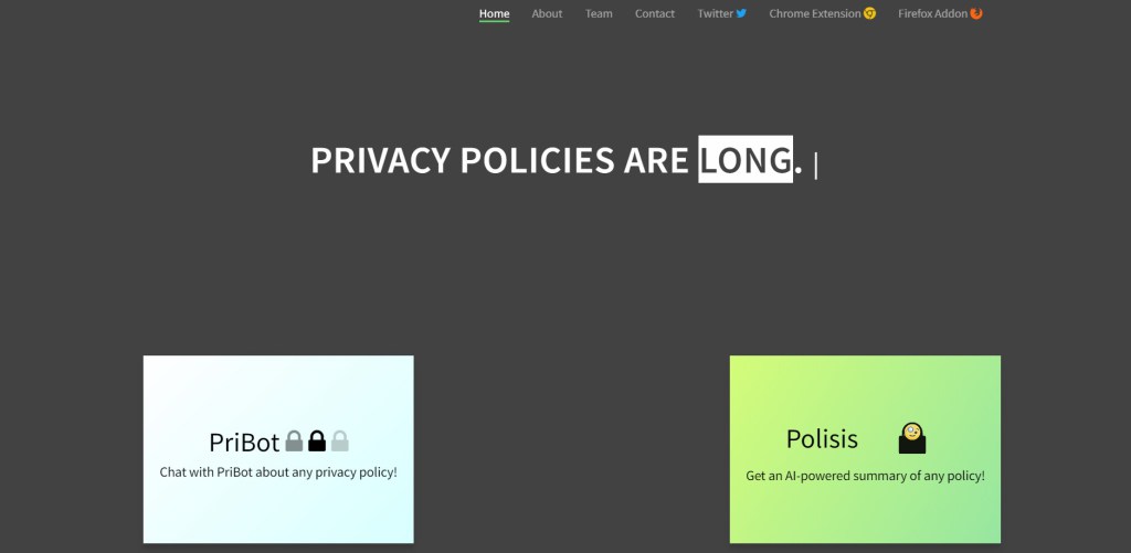 La solución más novedosa es Polisis, un marco automatizado de análisis de políticas de privacidad alimentado por IA, y PriBot, un Bot gratuito que nos da respuestas a las preguntas que tengamos sobre las políticas de privacidad.