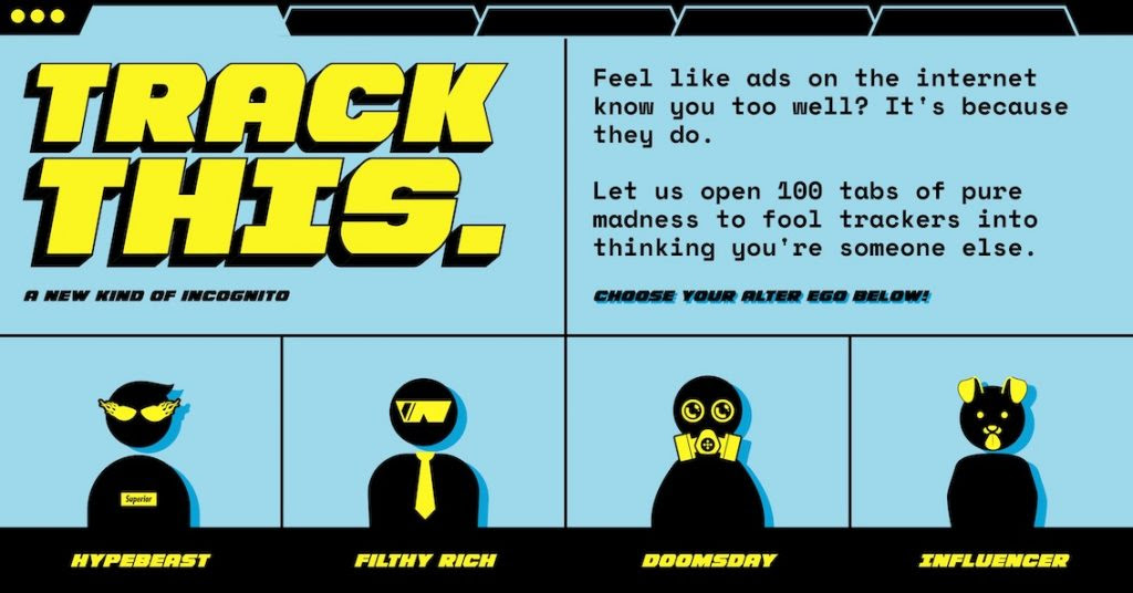 La idea es tan sencilla como lanzar cien pestañas de navegador que abren sitios elegidos con cierto criterio para simular una serie de perfiles, a elegir entre Hype beast (obsesionado con la moda y el postureo), Filthy Rich (asquerosamente rico), Doomsday (obsesionado con el fin del mundo) o Influencer (no necesita definición, ¿no?) y confundir a las herramientas de caracterización de perfiles creadas por las compañías para administrarnos su publicidad.